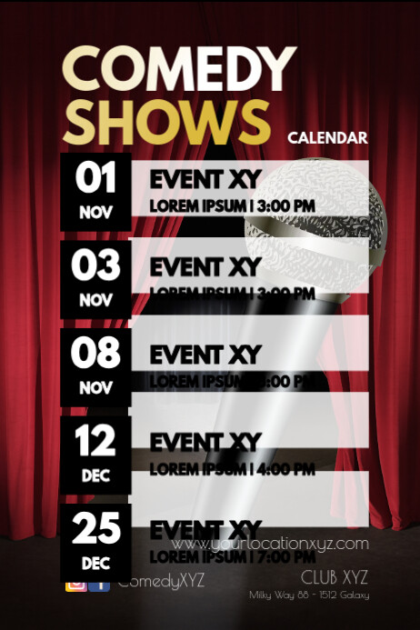 Comedy Calendar Comedy Shows Upcoming Gigs Acts Calendar ad Template | PosterMyWall: June 6, 2024 at 8:00 am.©2024 “Racine County Eye”. Use of this feed is for personal non-commercial use only. If you are not reading this article in your feed reader, then the site is guilty of . Once again, comedian and actor Kevin Hart has added another Phoenix show to his performance calendar. The new date is Oct. 13 at Footprint Center downtown. Hart initially announced an Oct. 11 Phoenix .